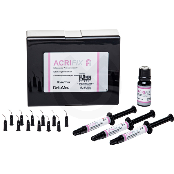 Resina antialérgica fotopolimerizable de precisión, libre de metacrilato de metilo para laboratorio y clínica. Es estable no se deforma y de fácil aplicación por ser un único componente. Endurece mediante lámparas de luz entre 360 y 420 nm. Debido a su forma compacta se puede repasar con facilidad y lograndose un acabado muy brillante. Existe en colores A3, incisal y rosa.