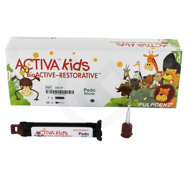 ACTIVA KIDS cuenta con todas las propiedades físicas y bioactivas de ACTIVA BioACTIVE- Restauración. Su tono blanco opaco es ideal para la odontopediatría. ACTIVA KIDS es seguro para los niños, no contiene BPA, ni Bis-GMA ni derivados de BPA, y se adhiere y enmascara las manchas de fluoruro diamino de plata. ACTIVA estimula el proceso de remineralización natural liberando y recargando el calcio, fosfato y fluoruro. Duradero y resistente a las fracturas. ACTIVA KIDS aporta todos los beneficios de los ionómero de vidrio con la estética, la fuerza y la durabilidad de un composite. Fraguado dual.