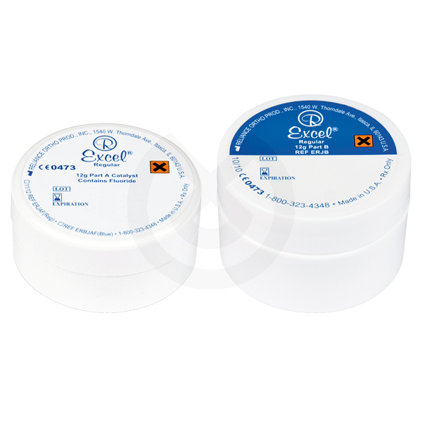Cementado indirecto, cementado de aparatos acrílicos y de expansores palatinos, requieren tiempo adicional que no se consigue con sistemas convencionales de composite o sistemas sin mezcla. Excel (Regular) se solidifica en 3 minutos, permitiendo al profesional tener suficiente tiempo para mezclar las pastas, aplicar la mezcla al aparato, posicionarlo en la boca y limpiar cualquier exceso de material. La pasta (Regular) tiene una viscosidad poca densa para poder fluir fácilmente desde la jeringa a la base. La pasta fluida no estorbará la colocación de ningún aparato y permite una fácil limpieza del exceso de material. Se puede llevar a cabo todo el proceso a temperatura ambiental, mezclando a partes iguales las dos pastas sobre un bloc de papel o cristal.