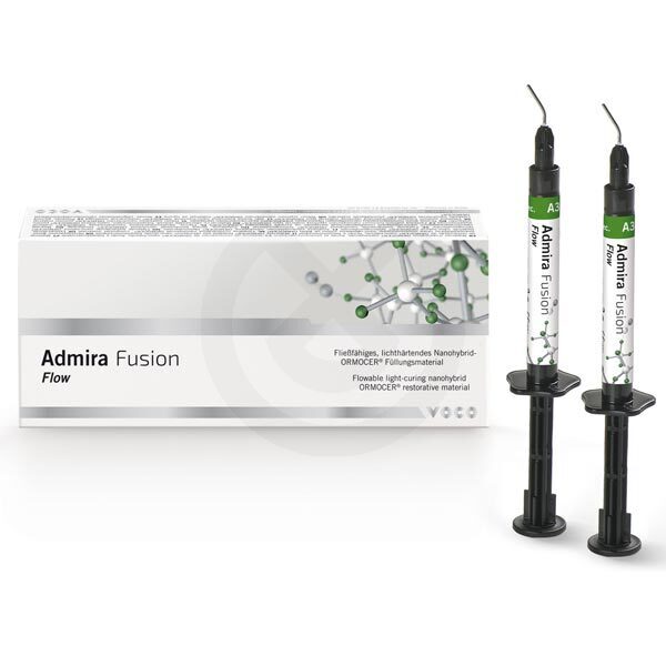 Material de restauración con tecnología ORMOCER® nano-híbrido, fluido y fotopolimerizable. Material fluido con base exclusivamente cerámica. Gracias a la tecnología ORMOCER® que se basa en una resina de óxido de silicio, tiene una contracción de polimerización baja (2,75 % en vol.) y un estrés de contracción especialmente reducido. Inerte, por lo que es totalmente biocompatible y tiene una buena estabilidad cromática.