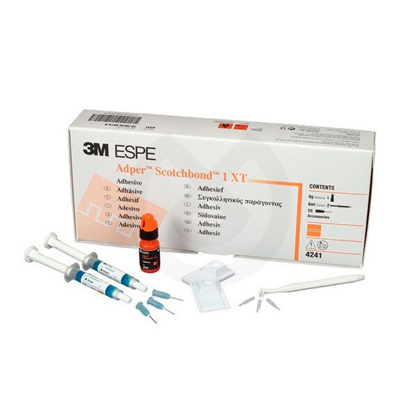 Adper Scotchbond 1 XT se basa en la experiencia, excelente rendimiento y comportamiento clínico de Adper Scotchbond 1. Ahora, incorporando la tecnología del nanorelleno que le proporciona, entre otras ventajas, una mayor fuerza de adhesión. Estas son algunos de sus principales beneficios: - Potencia de adhesión y facilidad de uso extraordinaria. - Nanopartículas extremadamente pequeñas por lo que el relleno se mantiene en suspensión, y no es necesario agitarlo antes de usar. - Se dispensa perfectamente mezclado de la botellita. - Dos modos de dispensado: monodosis (en formato L Pop) o botellita. - Ahorro de tiempo y un dispensado más higiénico con el sencillo dispensado monodosis. - Perfecto para todas las restauraciones fotopolimerizables directas o indirectas. - Nueva guía de uso basada en la experiencia de los profesionales.
