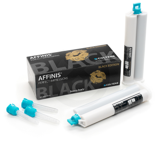 AFFINIS BLACK HB es una silicona de cubeta para técnica de un solo paso o dos pasos, que en combinación con Affinis Precious ofrece un contraste y visión del detalle de la impresión inigualable.