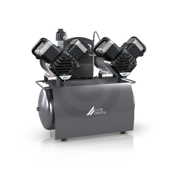 La solución flexible para una creciente necesidad de rendimiento y mayor seguridad de funcionamiento. Con su depósito de 50 litros, el Duo Tandem trabaja bien con uno o dos grupos, según se prefiera, para hasta cuatro usuarios. Lo más importante para el funcionamiento es un aire comprimido permanentemente libre de aceite y seco, puesto que la fresadora no puede permitirse ningún descanso durante el funcionamiento. La duración de conexión de un grupo compresor durante el funcionamiento con una fresadora se extiende mucho más allá de la duración de conexión en el funcionamiento normal en la consulta del dentista. El concepto experimentado de DÜRR DENTAL satisface en este sentido todas las exigencias y está diseñado para el funcionamiento continuo. Las piezas de alta calidad del sistema proporcionan la máxima precisión y suavidad de marcha. De esa manera, el compresor trabaja no solo más silenciosamente, sino que también tiene una vida útil más larga.