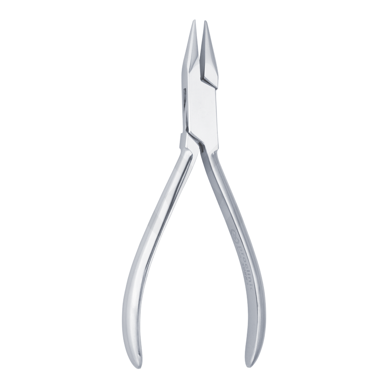 Alicate plano para doblar alambre de hasta 0,5 mm. Medidas: Apertura mango 11cm, apertura puntas 3cm, longitud cabezal 3,7cm y longitud punta 2,5cm