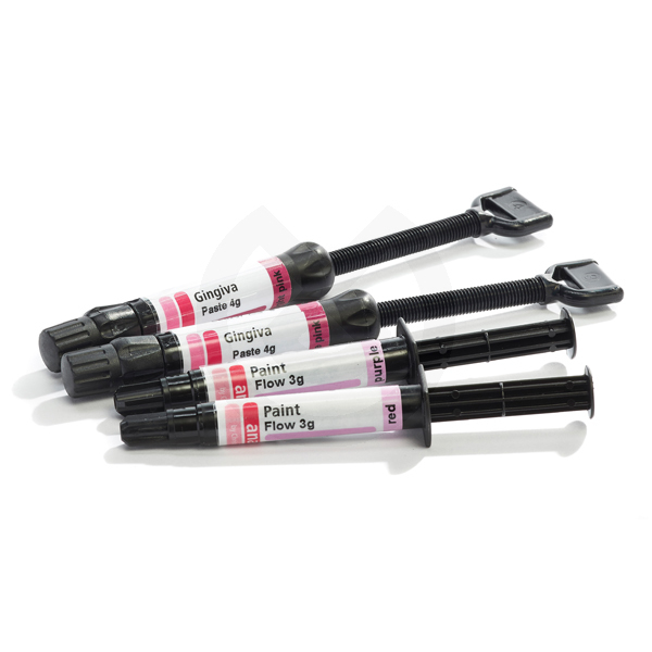 Composite de color gingival para la reconstrucción estética de la encía. Puede ser aplicado tanto por el técnico en el laboratorio dental o por el dentista directamente en boca del paciente. Anaxgum es la manera sencilla de dar un aspecto natural en una restauración «con estética rosa». Como anaxgum ofrece una amplia gama de aplicaciones, no hay límites para la reproducción individual de la encía del paciente. Puede ser usado en supra-estructuras sobre implantes, en coronas y puentes, en restauraciones removibles, así como para la individualización de dentaduras completas. El uso en clínica es posible también por ejemplo en retoques finos en caso de zonas interproximales hasta la reproducción completa de la encía.
