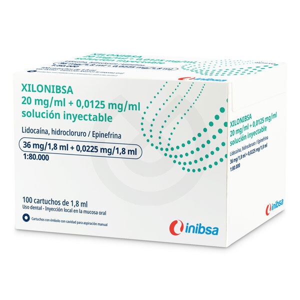 Xilonibsa 20 mg/ml + 0,0125 mg/ml solución inyectable. Anestésico con lidocaína, proporciona suficiente anestesia pulpar profunda, requerida para la mayoría de los tratamientos realizados en una clínica dental.