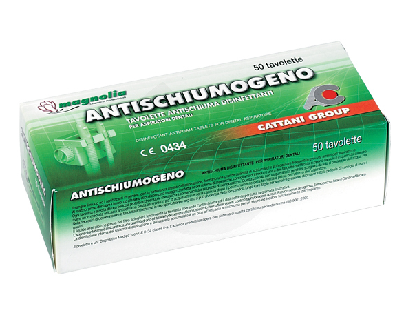 Pastillas antiespumógenas con desinfectante de amplio espectro (Bronopol), para conseguir la desinfección continua desde el filtro de los tubos de aspiración hasta el desagüe. La silicona que incorporan las pastillas evita la formación de espuma y las consiguientes averías de los vasos separadores y sistema de aspiración en general. En base a Bronopol.