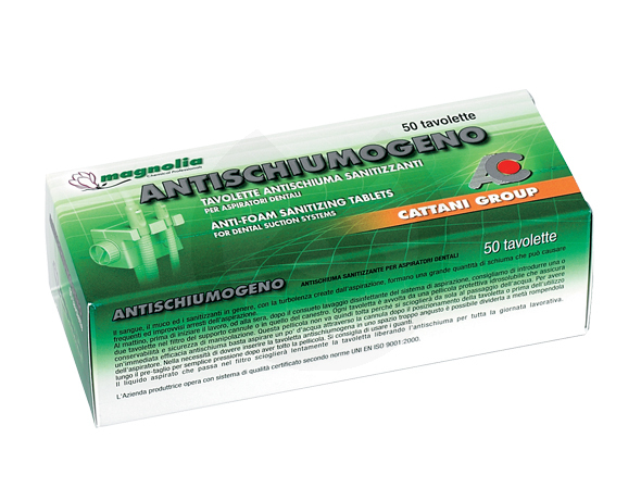Pastillas antiespumógenas con desinfectante de amplio espectro (Bronopol), para conseguir la desinfección continua desde el filtro de los tubos de aspiración hasta el desagüe. La silicona que incorporan las pastillas evita la formación de espuma y las consiguientes averías de los vasos separadores y sistema de aspiración en general. En base a Bronopol.