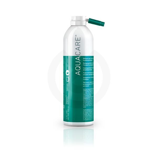 AQUACARE es un spray de limpieza para piezas de mano y contra-ángulos utilizados con líquido fisiológico. Particularmente indicado para instrumentos de implantología y de cirugía dental. Limpia los conductos de irrigación y disuelve las impurezas.