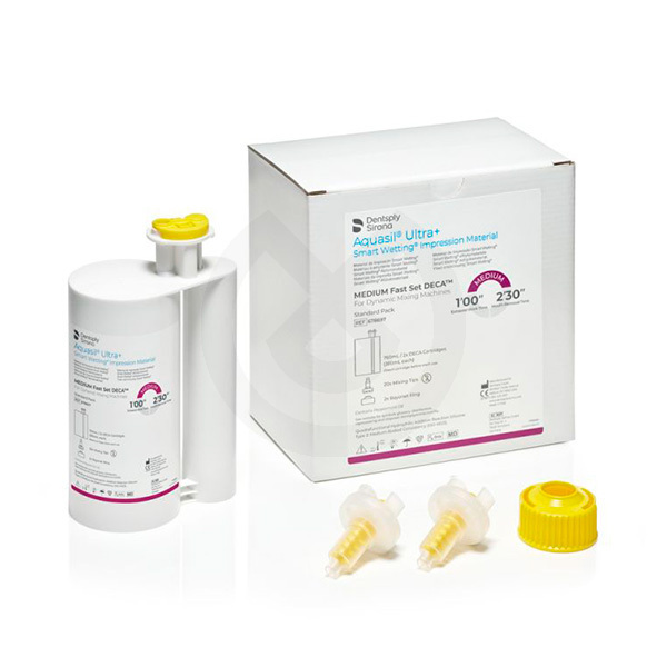 Aquasil Ultra+ es un material de impresión de VPS, indicado para todas las técnicas de impresión. El producto se ha optimizado para rendir en el momento que el odontólogo más lo necesita, en la toma de impresión a nivel intra-oral. En este momento, el nivel de detalle es óptimo, y minimiza el riesgo de formación de burbujas y desgarres. Aquasil Ultra+ está disponible en diferentes viscosidades, en diferentes tiempos de trabajo y fraguado, así como también en distintas presentaciones. Aquasil Ultra+, es un material que proporciona al profesional, un rendimiento adecuado y diferentes opciones para satisfacer las necesidades que se generan cuando se toma una impresión.