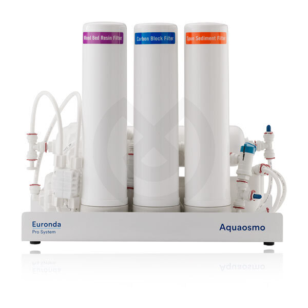 El sistema Aquaosmo es un dispositivo para la producción de agua desionizada mediante un proceso de ósmosis inversa. El complejo sistema de filtrado compuesto por 4 filtros y una membrana, garantiza una elevada producción de agua ideal para alimentar los autoclaves y todos los equipos de la clínica de conformidad con la norma EN13060 (15 μs/cm). De hecho, cuenta con una pistola que permite suministrar agua manualmente.