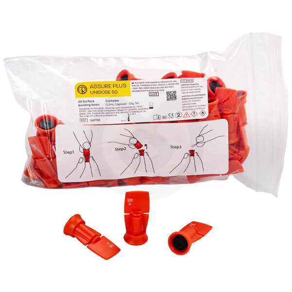 La resina Assure Plus para toda superficie incrementará la adhesión al esmalte normal, atípico, seco y ligeramente contaminado y ahora zirconia y acrílico sin primers adicionales. Este agente adhesivo universal adhiere restauración metálica y ahora porcelana sin ácido fluorhídrico. Puede ser usado con cualquier sistema auto o fotopolimerizable.