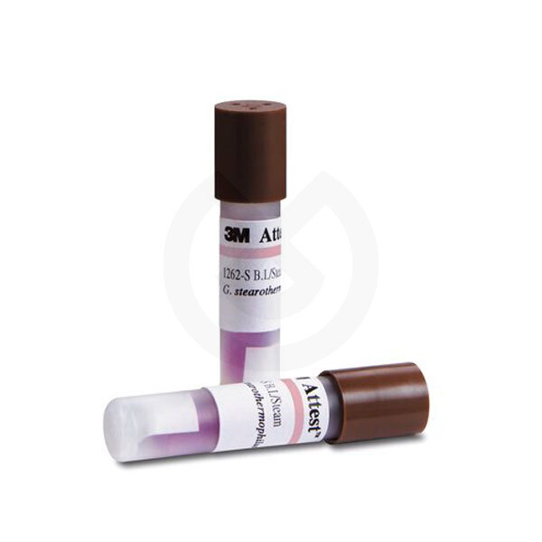 Attest™ Indicador biológico para Vapor ciclos pre-vacío y de gravedad. Lectura final a las 48 horas por colorimetría. Tapón marrón.