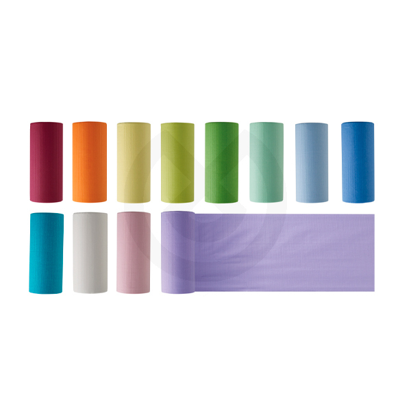 Baberos desechables en rollo compuestos por una capa de papel altamente absorbente, acoplada y gofrada con una capa de polietileno impermeable. Gran capacidad de absorción para proteger al paciente.
