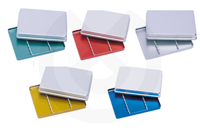 Medidas: 18,5 x 14 x 1,7 cm. Con soporte para instrumentos y tapa.Bandejas para instrumental, realizadas en acero inoxidable. Este material es el único que resiste todo tipo de productos químicos utilizados en la esterilización y descontaminación. Tanto la Base como la Tapa e incluso el porta instrumentos son de Acero Inoxidable.