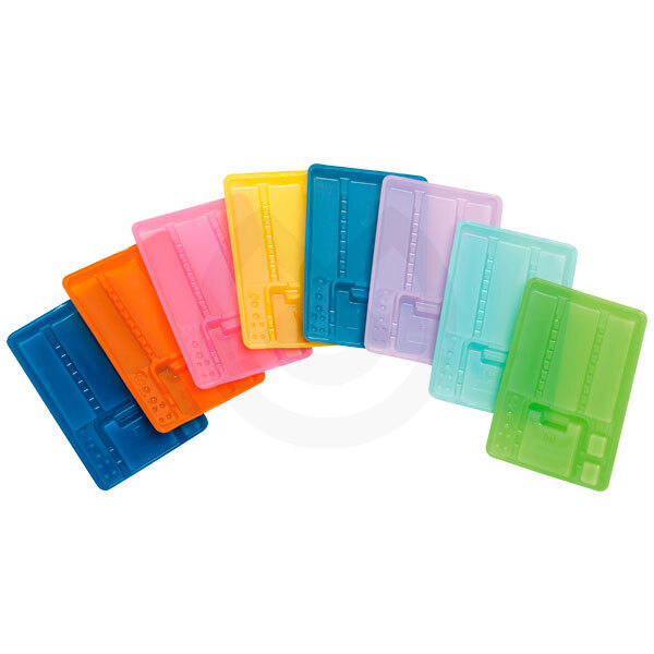Bandejas de plástico desechables de colores, compartimentadas. Utilización por separado o colocadas sobre las bandejas Standard de Aluminio o Acero. 28 cm x 18 cm