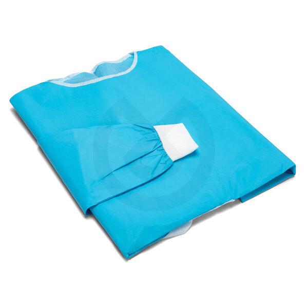 Bata impermeable desechable en color azul, indicada como protección para el operador en ocasiones de actividad que involucran una alta dispersión de líquidos. Al ser desechable elimina el riesgo de contaminación cruzada.
