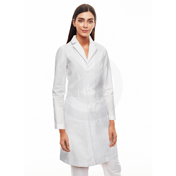 Cuenta con botonadura exterior y dos bolsillos de plastón. Su pinza en el pecho y su pinza de entalle junto a unos patrones cuidados, hacen de esta bata una prenda elegante y cómoda.
