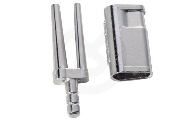 Pin de modelado con geometría estrecha de la cabeza en forma de V y dos guías que sirven sobre todo para el posicionamiento estrecho en espacios limitados. Diámetro de la cabeza 2mm, maguito metálico.