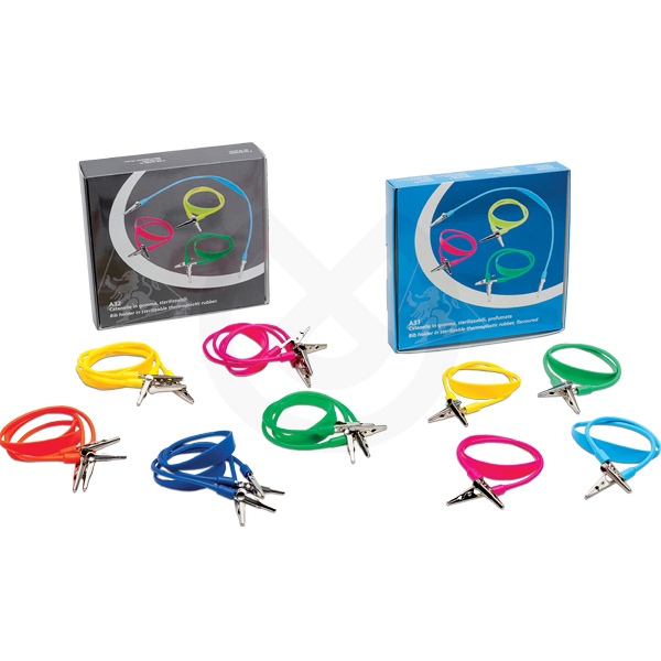 Portaservilletas de goma esterilizable. Cada portaservilletas tiene un olor según el color: azul de olor talco, fucsia de vainilla, amarillo de limón y verde con olor a pino.