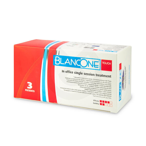 BlancOne® TOUCH está estudiado para ofrecer un blanqueamiento delicado y eficaz. Tratamiento para efectuar en clínica con una baja concentración de peróxido de carbamida (16%).