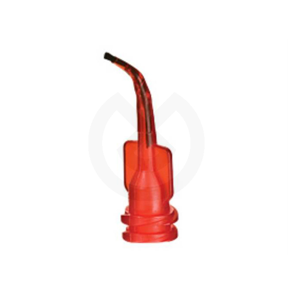 Punta totalmente de plástico (Ø 1,07 mm) con conducto helicoidal interno y extremo con cepillo. Color rojo transparente. Para aplicar materiales viscosos frotando.