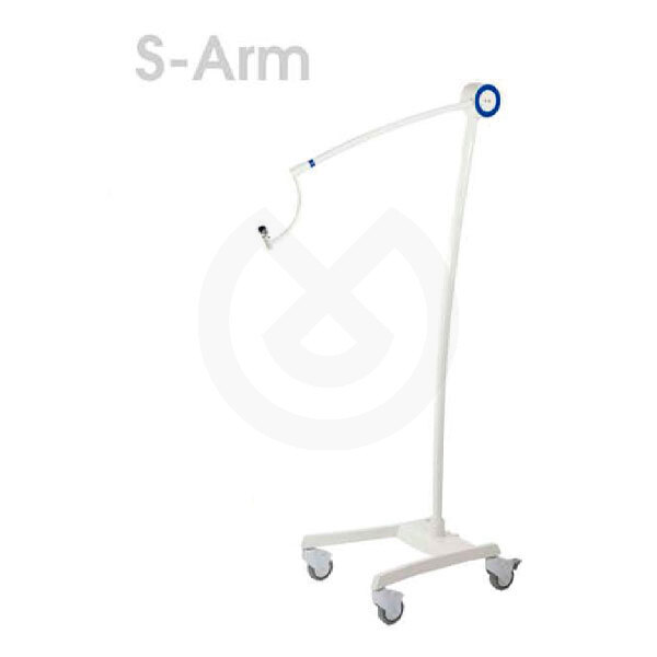 Brazo articulado rodable con rótula para cámara SurgiCam. Cable de alimentación y de video por el interior. Base con 4 ruedas (2 con freno). Bandeja de soporte para pedalera de control. Ajuste de sensibilidad en rótula. Mango extraíble y esterilizable.