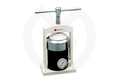 Fabricada en duraluminio templado. Accione la prensa hasta que el manómetro del recipiente alcance una presión de 3 a 5 kg/cm2, dejándolo polimerizar el tiempo necesario para cada tipo de resina.