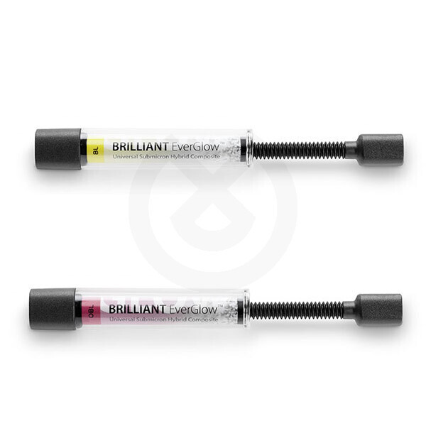Reposición en Jeringa de Brilliant EverGlow composite híbrido submicrónico de última generación, de uso universal muy fácil con sobresaliente pulido y excelente estabilidad del brillo y color, ideal para el sector anterior y buen rendimiento en posteriores. Disponibles opcionalmente tonalidades opacas y translúcidas para estratificar.