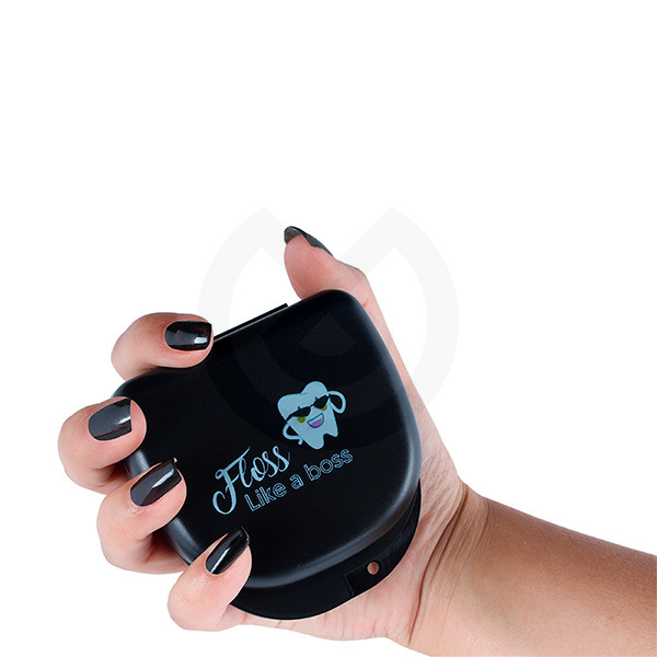 Las Cajas Negras Porta Ortodoncia con Mensaje Bader son prácticas y resistentes, diseñadas para guardar retenedores, férulas y aparatos removibles de ortodoncia. Su acabado en color negro elegante y las frases motivadoras impresas en cada caja convierten este accesorio en un detalle especial para los pacientes.