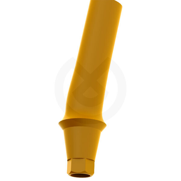 Finalidad: Aditamento calcinable angulado para corrección de emergencias indeseadas de los implantes. Una vez modelado y colado, forma el orificio, el asiento del Tornillo BHS y la conexión de la prótesis al implante.