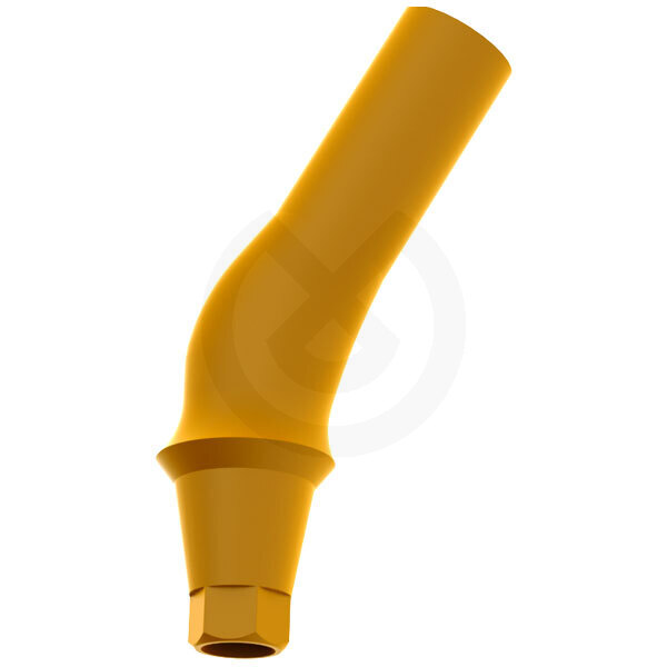 Finalidad: Aditamento calcinable angulado para corrección de emergencias indeseadas de los implantes. Una vez modelado y colado, forma el orificio, el asiento del Tornillo BHS y la conexión de la prótesis al implante.