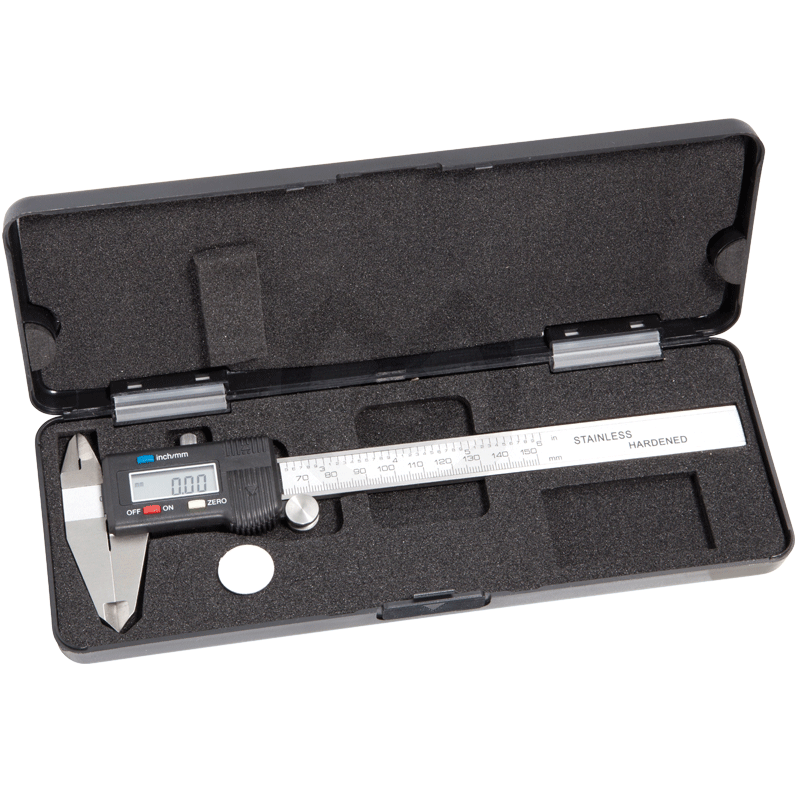 Pie de rey digital de precisión. Medición de 0 a 15 centímetros. Precisión de 0,1mm. Lectura fácil gracias a la pantalla digital que muestra la medida que se está calibrando.