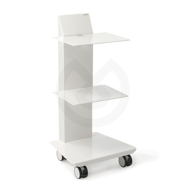 Carrito móvil portaaparatos con ruedas y frenos Material: metal electrozincado, acabado de pintura Medidas: 46 x 40 x 92 cm 2 Estantes en metal Alimentación y 2 enchufes Schuko
