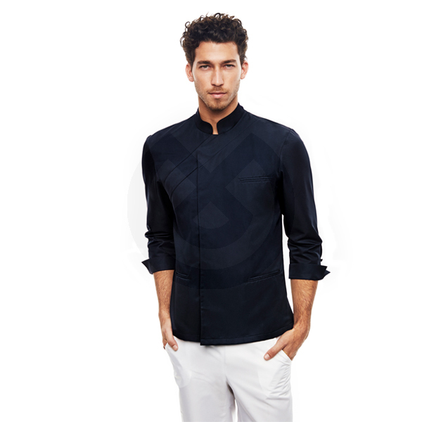 Casaca con frente cruzado, cremallera en costado y automáticos ocultos, elegante y cómoda.