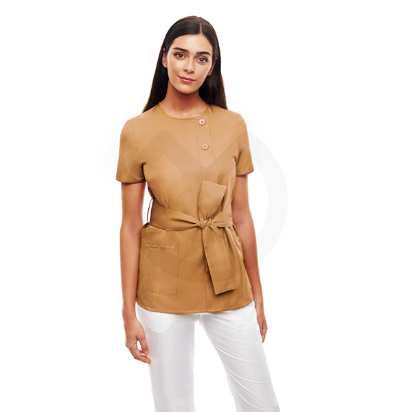 Casaca elegante y cómoda, cuenta con doble botonadura en escote, lazo en cintura para entallar a gusto de cada una y doble bolsillo lateral.