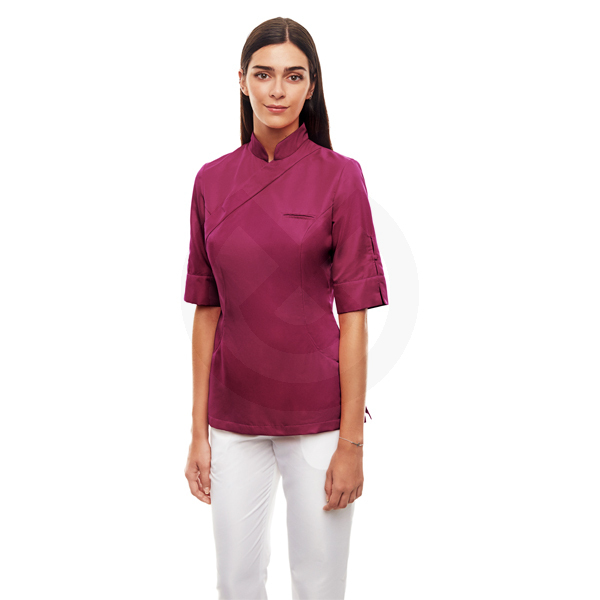 Casaca con frente cruzado, cremallera en costado y automáticos ocultos, elegante y cómoda,