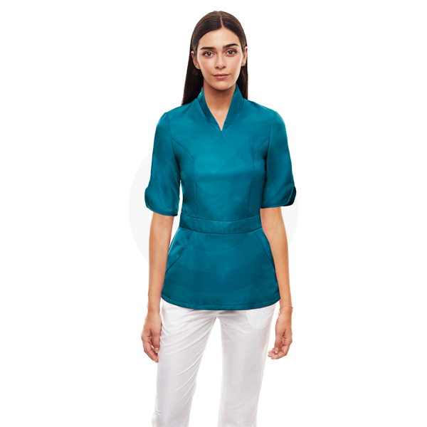 Casaca con cuello chimenea, corte en cintura, manga con abertura y dos bolsillos delanteros. Una prenda que te hará diferente por su singularidad.