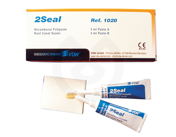Cemento sellador de canales biocompatible. 2Seal proporciona un sellado hermético y de larga duración que previene la filtración de líquidos y micro-organismos en el canal. - Fácil de mezclar: optima viscosidad - Mínima contracción. - Estabilidad dimensional a largo plazo. - Radiopaco