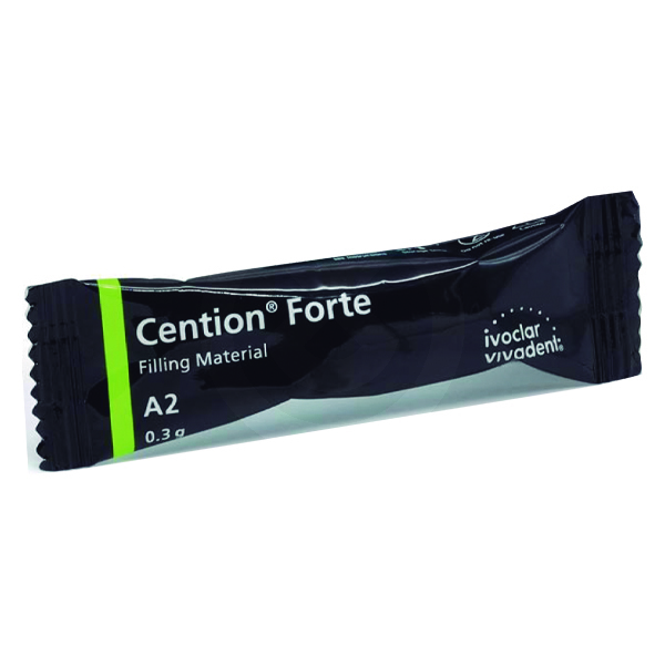 Cention Forte es un material de obturación radiopaco autopolimerizable con opción de fotopolimerización. Para restauraciones directas de dientes anteriores y posteriores en las superficies oclusales. Cention Forte libera iones de flúor, calcio e hidróxido.
