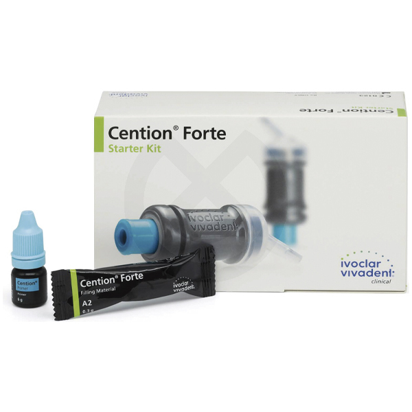 Cention Forte es un material de obturación radiopaco autopolimerizable con opción de fotopolimerización. Para restauraciones directas de dientes anteriores y posteriores en las superficies oclusales. Cention Forte libera iones de flúor, calcio e hidróxido.