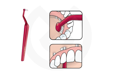 Un cepillo innovador con un ángulo especialmente diseñado para acceder al lado lingual y palatino de los implantes. Cabezal pequeño y ovalado con filamentos largos. Textura media. Mango ergonómico. Resuelve con máxima funcionalidad un punto de difícil acceso para los pacientes que llevan implantes o prótesis sobre implantes. Colores surtidos.