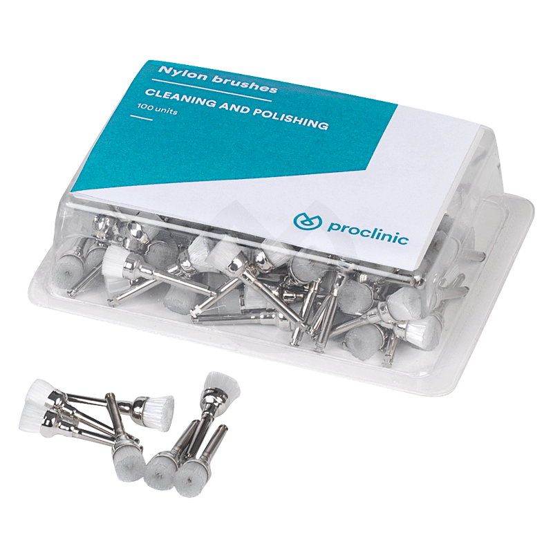 Cepillos de nylon con una dureza óptima. Para contra-ángulo. Envase económico.