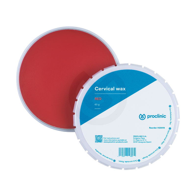Cera cervical rígida, libre de tensiones. Alta fluidez y precisión, no mancha. La ligera transparencia permite ver claramente el borde marginal, de forma que se obtiene un perfecto control óptico del modelado.
