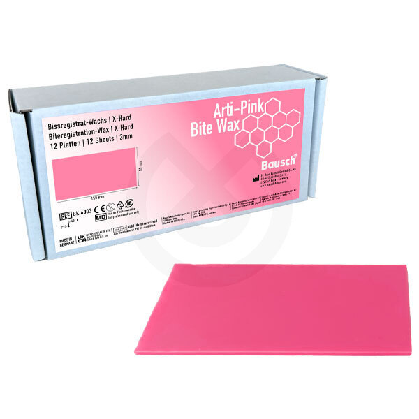 La cera Arti-Pink se utiliza para un registro de mordida preciso permitiendo la reproducción exacta de los contornos en la intercuspidación. Se caracteriza por sus excelentes propiedades de modelado.