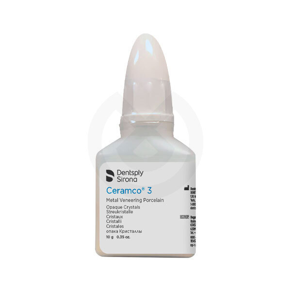 Ceramco3 es una cerámica feldespática con pigmentos orgánicos mezclados en el polvo. La fórmula rica en potásio es mucho más estable que las cérámica feldespáticas bajas en potasio y que necesitan otros minerales para poder hacer la cocción. Esta estabilidad permite un control individual mucho mejor.