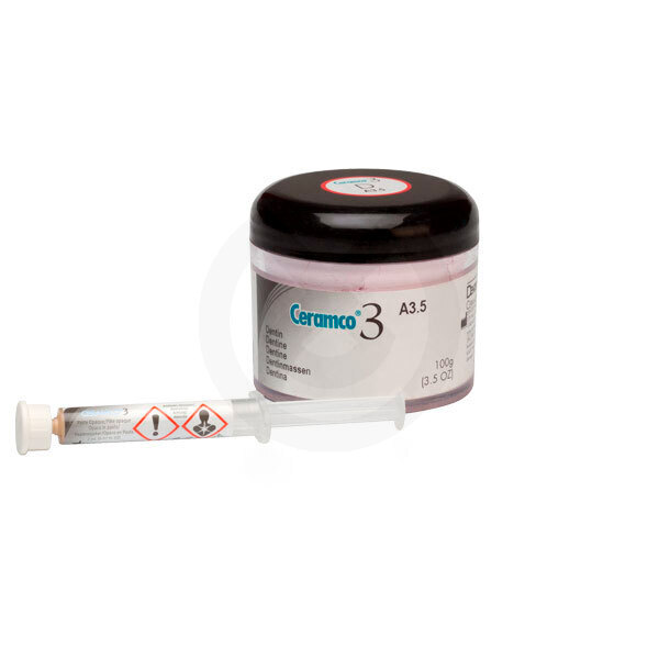 Ceramco 3 es un sistema completo de metal cerámica que combina una fiabilidad uniforme del producto con una excelente estética natural. Este proceso de fabricación asegura que cada capa de cerámica concuerde exactamente con la guía de colores. Todo el sistema, desde los opaquers, pasando por las dentinas, los incisales naturales y incisales opales imparten la fluorescencia de la dentición natural.