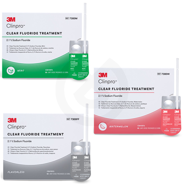 El tratamiento con flúor 3M™ Clinpro™ Clear es una fórmula con base acuosa y libre de colofonia, lista para aplicar, que proporciona protección para las superficies de esmalte y dentina. Este tratamiento con flúor cuenta con una fórmula lista para actuar que facilita la absorción eficaz del flúor con un tiempo mínimo de contacto de tan solo 15 minutos.