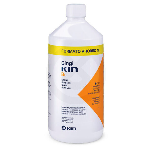 El colutorio GingiKIN B5 está indicado para el cuidado diario y ayuda a prevenir la inflamación y el sangrado de las encías. Incluye en su composición cloruro de cetilpiridinio (CPC), antiséptico bucal recomendando para hacer frente a la entrada y replicación de coronavirus.