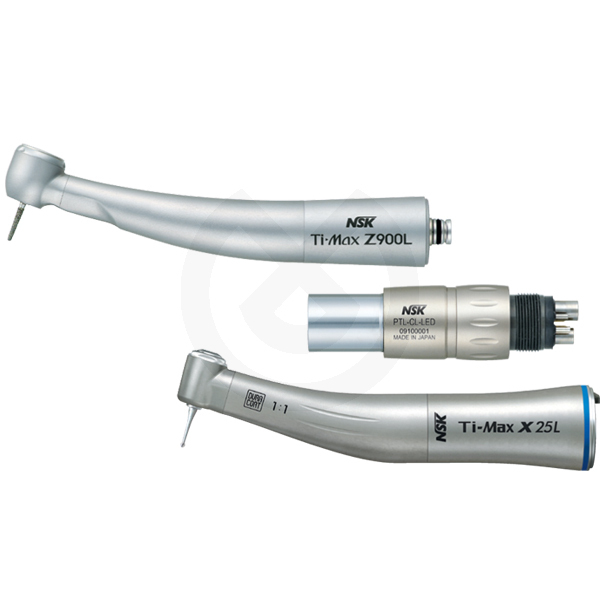 Turbina de titanio con luz modelo Z990L + Acoplamiento NSK modelo PTL-CL-LED + Contra-ángulo de titanio con luz modelo X25L